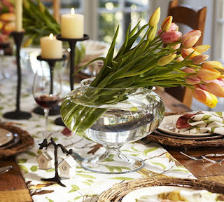 Check out these pretty tulip arrangement on the dining table. You can also add some candles to highlight the beauty more.